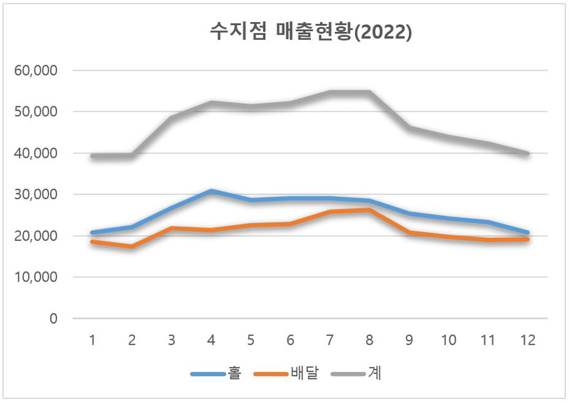월평균 매출 4,500~5,000만원 유지 (2022년, 2개점)