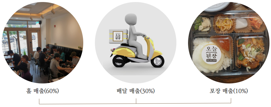 홀을 메인으로 배달과 포장을 동일 공간에서